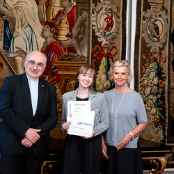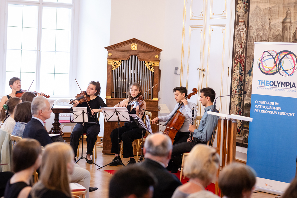 Unter dem Titel "Unheilige Allianz oder heilige Pflicht" haben Schülerinnen und Schüler im katholischen Religionsunterricht im Jänner dieses Jahres insgesamt 343 Essays und Fotoarbeiten zum Thema Religion und Politik eingereicht. Nach Beurteilungen in den jeweiligen Diözesen und der Bundesjury wurden im Mai die Siegerinnen und Sieger der fünften Religions-Olympiade "Theolympia" verkündet und am Montagabend im Festsaal des Erzbischöflichen Palais in Wien geehrt. Wir waren mit der Kamera dabei.