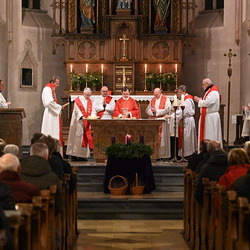 Am 4. Dezember feierte die Katholische Männerbewegung Hollabrunn mit einem Festgottesdienst ihre 250. Dekanatsmännermesse – ein beachtliches Jubiläum für die mitgliederstärkste KMB der Erzdiözese Wien. Erzbischof Mag. Josef Grünwidl zelebrierte um 18:30 Uhr in der Stadtpfarrkirche, anschließend lud die Dekanatsleitung zum Fest ins Pfarrzentrum. Wir waren mit der Kamera dabei.
